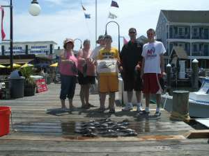 Restless Lady stop in 40 fathoms had a bite which then suddenly had a 200 pd mako one the end of tuna gear meanwhile the tunas were everywhere 5 miles away in the washington. Got their boats closing in had 9 nice ones on only got two had throw backs gaffers skippys all day, but the schools of tuna was huge. Bait, whales , birds, slicks lots of life happy crew …giant bluefin over 500 released a couple big eyes,…still great fishing for all.Thanks from the Restless Lady