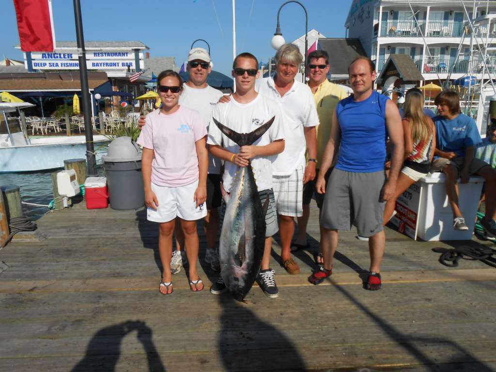 Capt.Todd and Brandon headed out as the storm was coming in, ran to the south to get out of it and trolled to the Hotdog, ended up with releasing 7 bluefins, got the over to bring home. Another great crew for there annual trip crew and ready for next year.