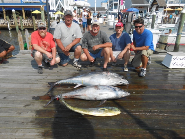 Had a crew that’s been fishing with Capt.Todd for 20 years. Although water very rough the fish were snapping around the Hotdog. Restless Lady released 12 bluefins getting our over and under bluefin tunas along with a gaffer. Great fishing, but very rough seas, but a fun day with Albert Angel crew.