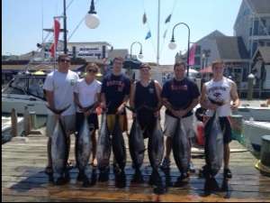 We were out Monday and had a good bite with nice yellowfin. Today we arrived at the Dog spot at 0645am and we were hooked up within 10 minutes and we were done in 2 hours with 8 fat 50# YFT hogs. We left them chewing!!