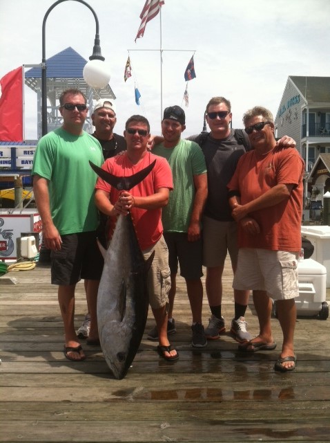 Lots of boats were there and it was a slow pick on the chunk, they had 2 bites landing one 52″/ 87# BFT before having to head for the barn early due to thunderstorms.