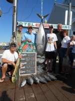 Friday July 5th– Out to the bluefin grounds, marking fish all day but bite not as good as day before at the Massey canyon, we did have some bites and was able to get one bluefin to the dock. Had a great crew aboard, looking forward to thier return in September.Saturday July 6th– Capt. Todd took off 65 mile trip to the Washington, had a great trip with a great crew- had some throw back yellowfins, albacores, couple dolphin bites then a nice Big-Eye tuna 154 pds . Great day. Back fishing tomorrow.
