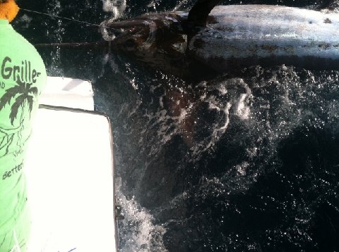 Capt. Todd and first mate Willy went to the Wash both days. Sunday had 7 jumbo YFT up to 80# all hits on the green stick only, could not get a bite on trolled lines except a 450# Blue marlin that hit short rigger hoo bait, successful release. Monday was snotty weather and had 2 fat YFT up to 75#, hit the bar and a naked hoo. Green stick had only mahi and skippies. Weather cancelled yesterday and today, weather looks good for tomorrow and Tuna Tourney over the weekend.