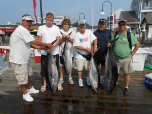 Capt. Todd and Brandon up to the same trick for 2 more days w/ 2 more great crews releasing bluefins keeping an over and a under bluefin for the for the dock with some yellowfins all in the hotdog area….