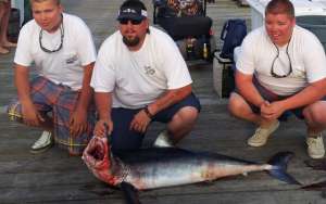 OC SHARK TOURNAMENT for the RESTLESS LADY, fished Thursday in the terrible conditions inshore, had 1 release, won a daily calcutta.