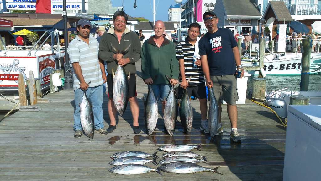 Alright! Everyone always says ‘Call me when the meat is there’. Meat is here! Could be the best fishing of the season right now. Capt. Todd & Capt Brandon released 16 bluefins, 18 yellowfins and broke a bigeye tuna. They were able to get there legal blue fins and 6 yellowfins to the dock, but bites and the action was nonstop. All the anglers did a great job. The rest of the fleet had a great day also. 70 fathoms 69 to 72 degree break. Rock pule to the poormans. Anglers were Raul Rodriguez, Caual Hernandoz from DC, Raul Rofrigaz from Alexandria VA, Samuel Villalta from Manassas VA, & Scott Dailey from West Ocean City. Fish are here now!!! Alright Yellowfins and bluefins on the canyon edge. Now is the time to go while the fish are there, weather is good next week!! Makos are here, water shaping up for a great season!!