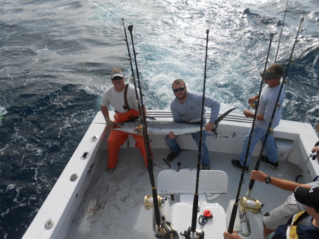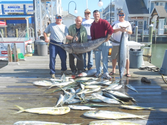 Fishing Report For: October 17, 2013 Ocean stopped roaring, Restless Lady and Capt.Todd out for overnight trip stopped on bait at 45 fathoms had a 51pd Wahoo, trolled up 2 more Wahoos and wanted to get to the big-eye hole. No tunas for us, set up in Washington for the night produced 1 bite, a nice marker swordfish, trolled in the morning and caught gaffers and 1 out of 3 White Marlins, bailed a limit of dolphins. Great crew, fun fishing. We’re out again Saturday on another 30 hour trip.