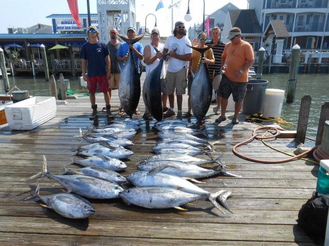Captain Todd and Will left 12 noon Tuesday and came home today at 11 am. Got to the Washington and got on it right away. Caught 15 yellowfins by 4pm then 5 big-eye bites caught 3,195,165,150, more yellowfins on the troll until 9pm. Then went out deeper to try swordfishing got nothing but tunas chunking on spinning rods, jigging. Caught a total of 75 yellowfins, brought home24 had a great crew, lots of fun.