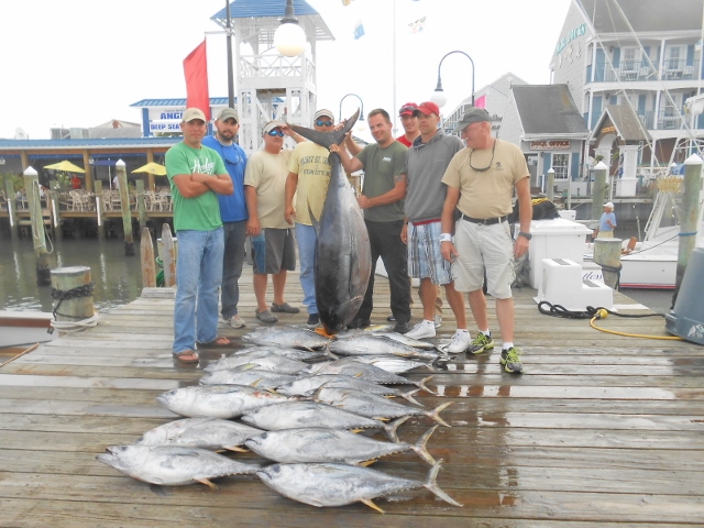 Capt. Todd and Will back at it, left Sunday at 12 noon and came back Monday morning at 11am with a butter ball 248 big-eye and a load of yellowfins chunking,trolling…Lots of great action chunking with spinning rods had at least40 bites, had 3 big-eye bites, another great crew of Wounded Warriors who had a excellent time. GOD BLESS AMERICA.