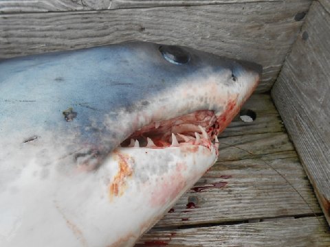 After sitting 6 days watching the wind blow Capt.Todd and Will off to the Washington with a great crew along. Had early action with 5 blackfins, 30 gaffers and a yellowfin. Battled with a 500 pd blue marlin for 50 minutes. Then a 269# BE bigeye shows up to the boat with a missing tail, Will landed the Bigeye and fed a bait to a large mako, 309# mako, pig mako with a Bigeye tail in his belly! Overnight action is hot if weather holds, out again tomorrow.